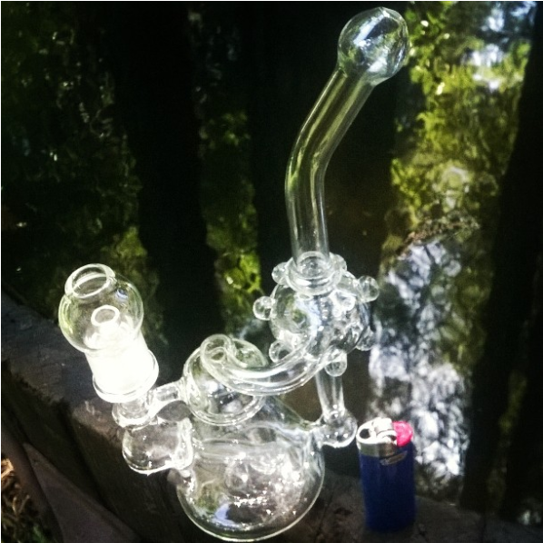 This single style recycler has by far been one of our best finds here at SCD! This rig stands in at 10 inches tall and we believe has a just about a perfect pull to hit. It's made out of very thick glass and we have even dropped ours off the testing table (not intentionally) without it breaking! This recycler creates a great looking vortex in the return tube and is capable of milking fat dabs! Unfortunately, the creator of this rig is unreachable at the moment and all we have are the test rigs. We are hoping to have this rig available in the future